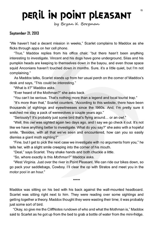 “These short stories encompass creepiness, creativity and nostalgic memories for me...There’s no break in the action from beginning to end... totally cool stuff from Mr. Borgman.” – Jeff Wamsley, author of Mothman: Behind the Red Eyes and curator of the world’s only Mothman Museum (mothmanmuseum.com)