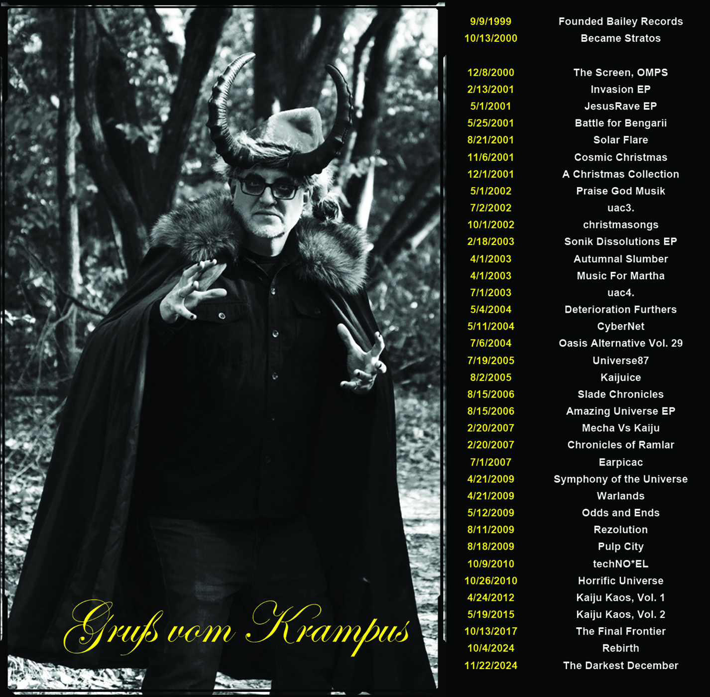 Released on November 22, 2024, The Darkest December marks the 36th album to feature original music by Stratos (aka Bryan K Borgman) in his career as an electronic music composer/arranger/producer. The Darkest December features 11 new tracks including a mix of traditional Christmas carols and original ambience.