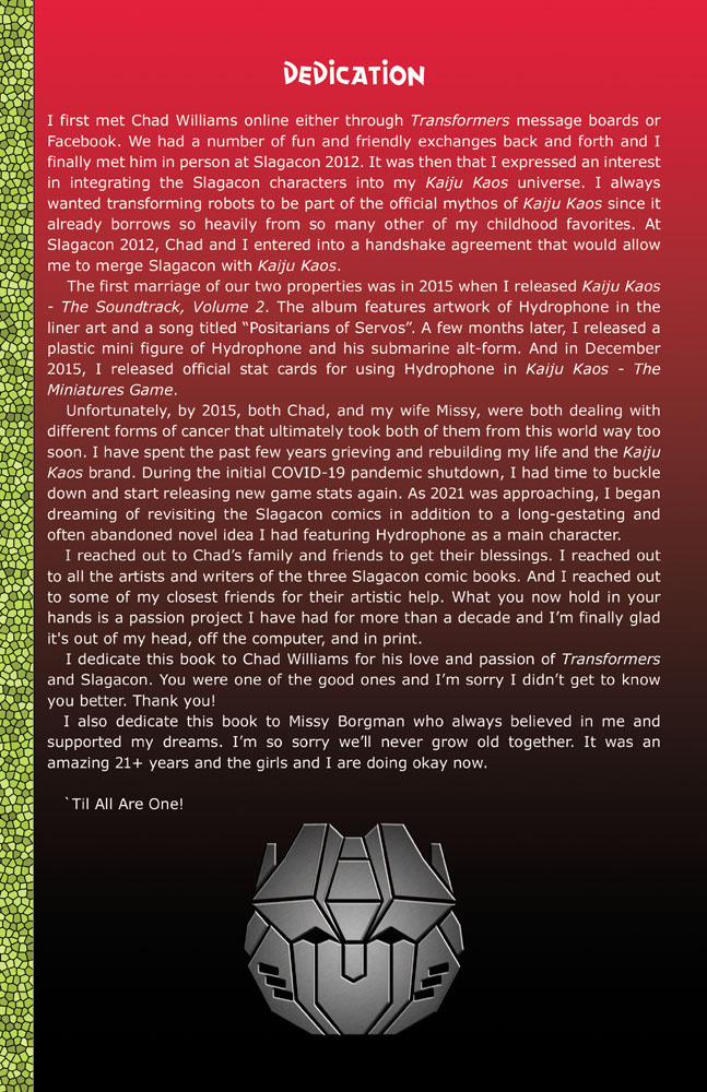 100 pages of full color fun! Features all three Slagacon convention comics (2010-2012) collected in one place for the first time plus and a brand new, 4-part original short story by Bryan K Borgman (aka Stratos).