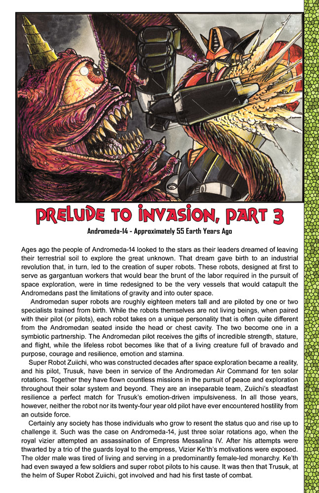 This graphic novel also features a bonus comic, Kaiju Kaos: Enter Darkrider, now in color! Enter Darkrider was originally released independently in black and white in 2005.